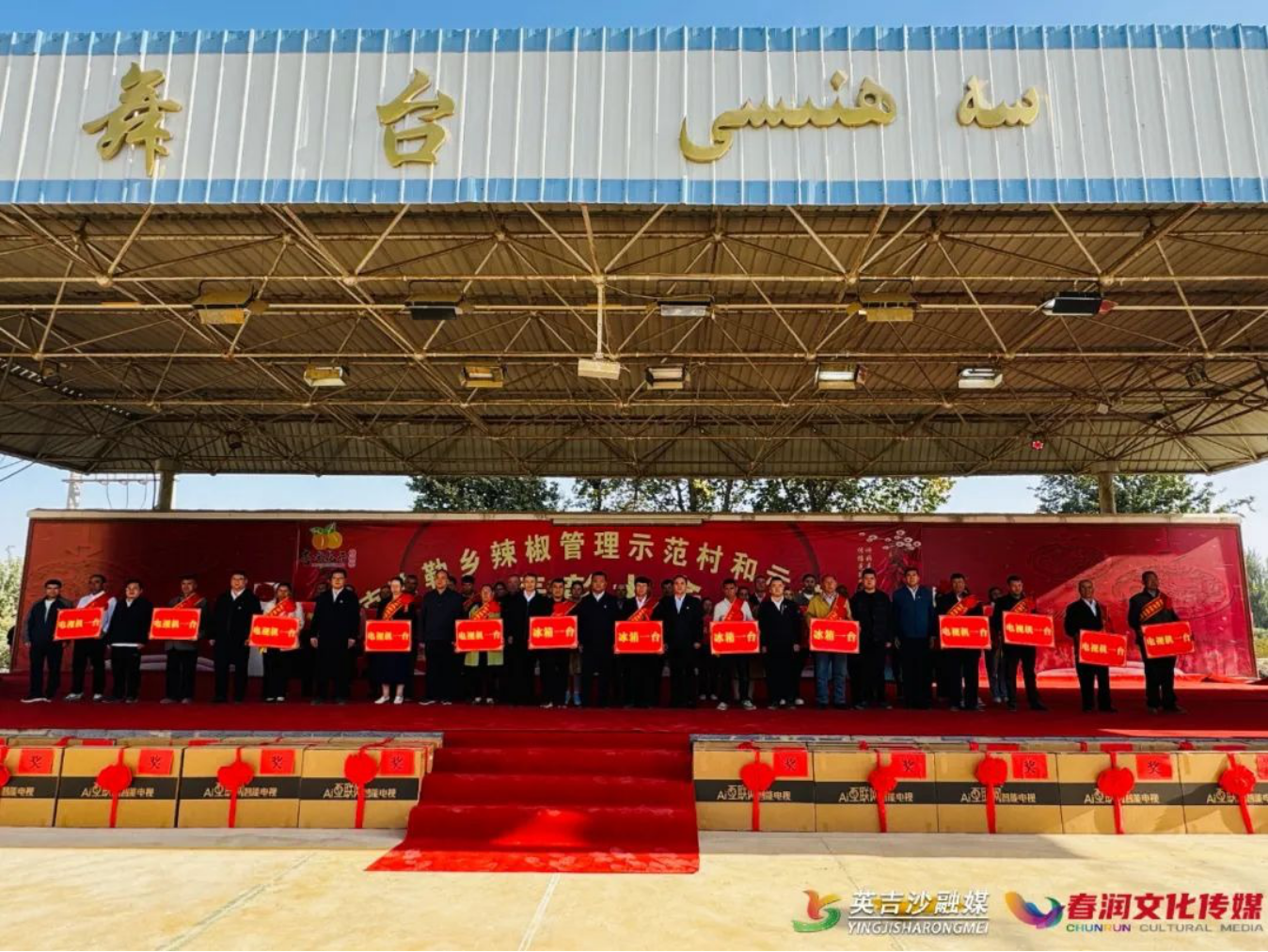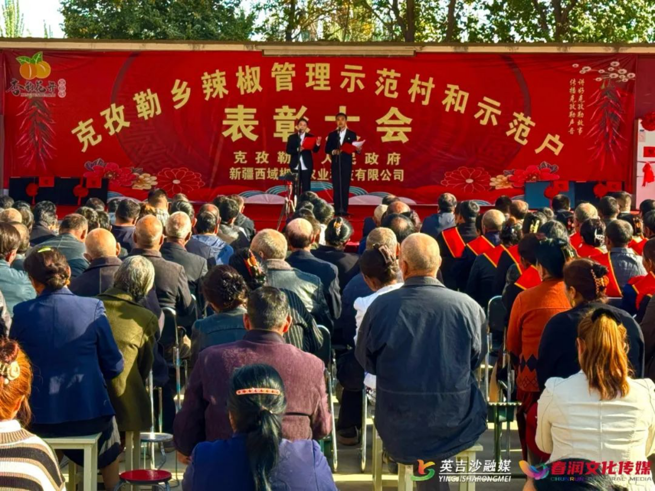 走进克孜勒乡兰干艾日克(4)村,文化广场人头攒动,欢声笑语,热闹非凡。乡领导班子全体成员,全乡各村支部书记、村委会主任,辣椒加工企业负责人及辣椒种植户共计100余人参加表彰大会。